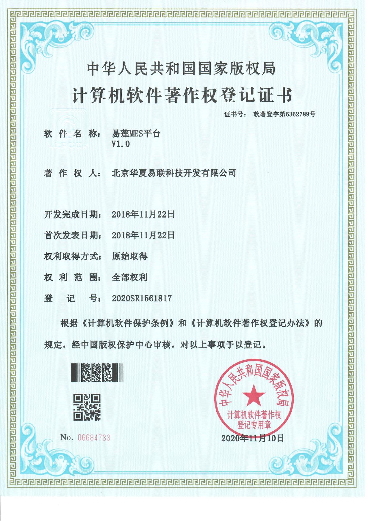 | 易莲MES平台V1.0计算机软件著作权证书.jpg | 2022-09-30 17:31 | 320K | ||
